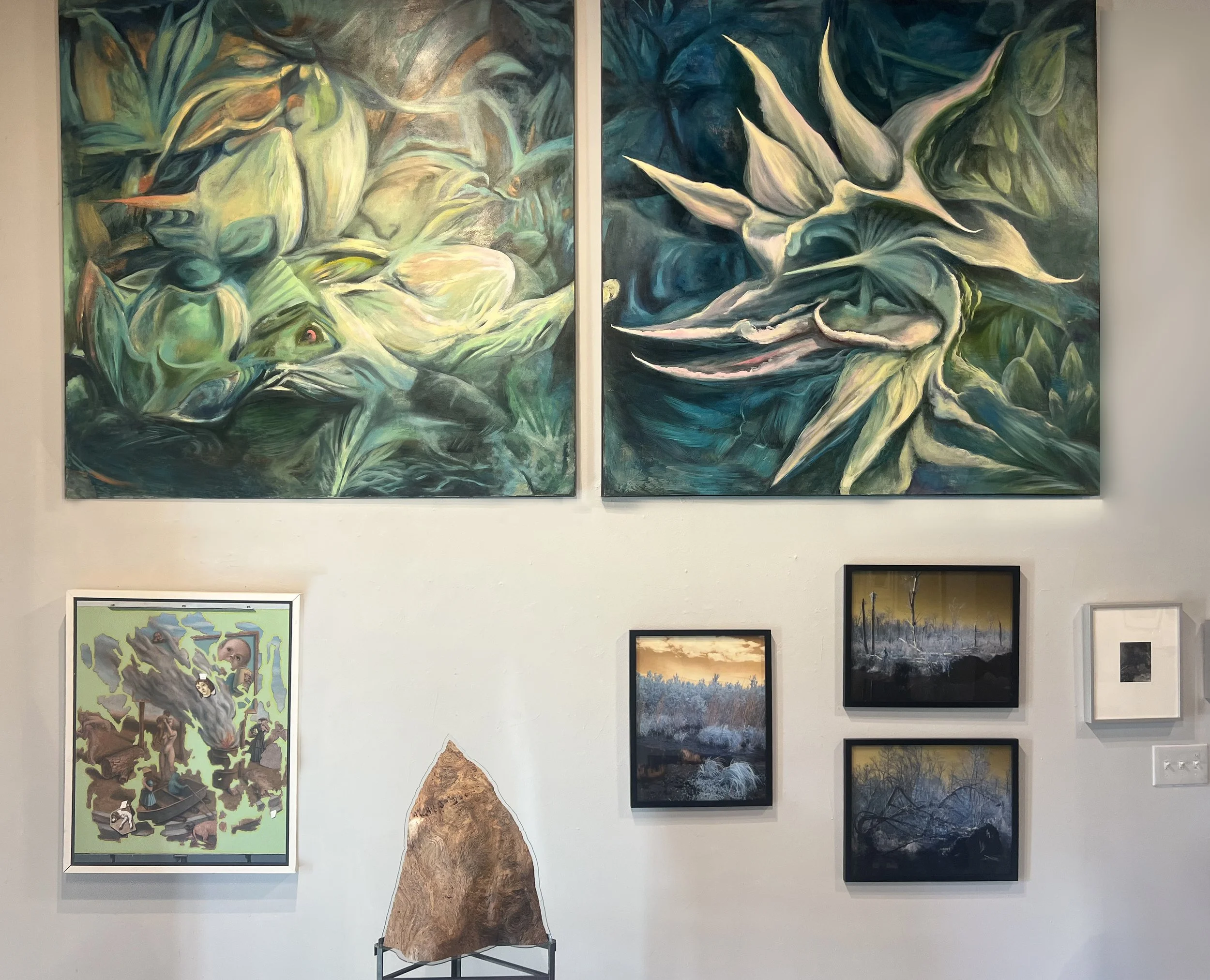 In an age marked by institutional friction, inherited division, and cultural fatigue, even a brief visit to a gallery can feel miraculous – a fleeting enchantment. A Summer Salon in Light and Shadow is an exhibition that embraces this miracle while recognizing its delicate vulnerability. The show brings together a diverse group of artists across mediums – sculpture, painting, printmaking, fiber art, drawing, and photography – in a salon-style presentation. What unifies these varied works is a shared tension between wonder and disquiet: moments of beauty pressed against unease, and mystery laced with uncertainty. Each artist invites viewers to experience astonishment and introspection in equal measure, reminding us that enchantment in art, though fragile, can still illuminate dark or weary times..