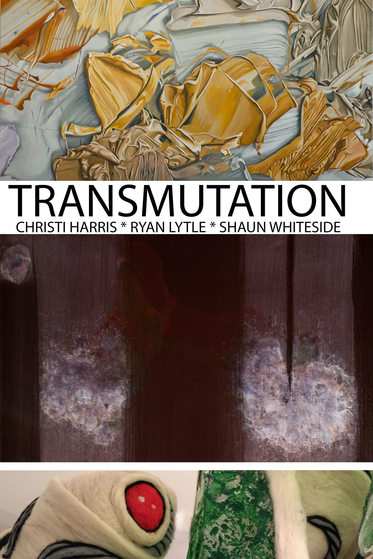 TRANSMUTATION is an exhibition of new paintings by Christopher Newport University's Department Chair Christi Harris and Radford University's Shaun Whiteside. A large scale sculptural installation by Ryan Lytle, now an MFA student at Maryland Institute College of Art, completes this exhibit. See LindaMatneyGallery.com for additional information on these artists.