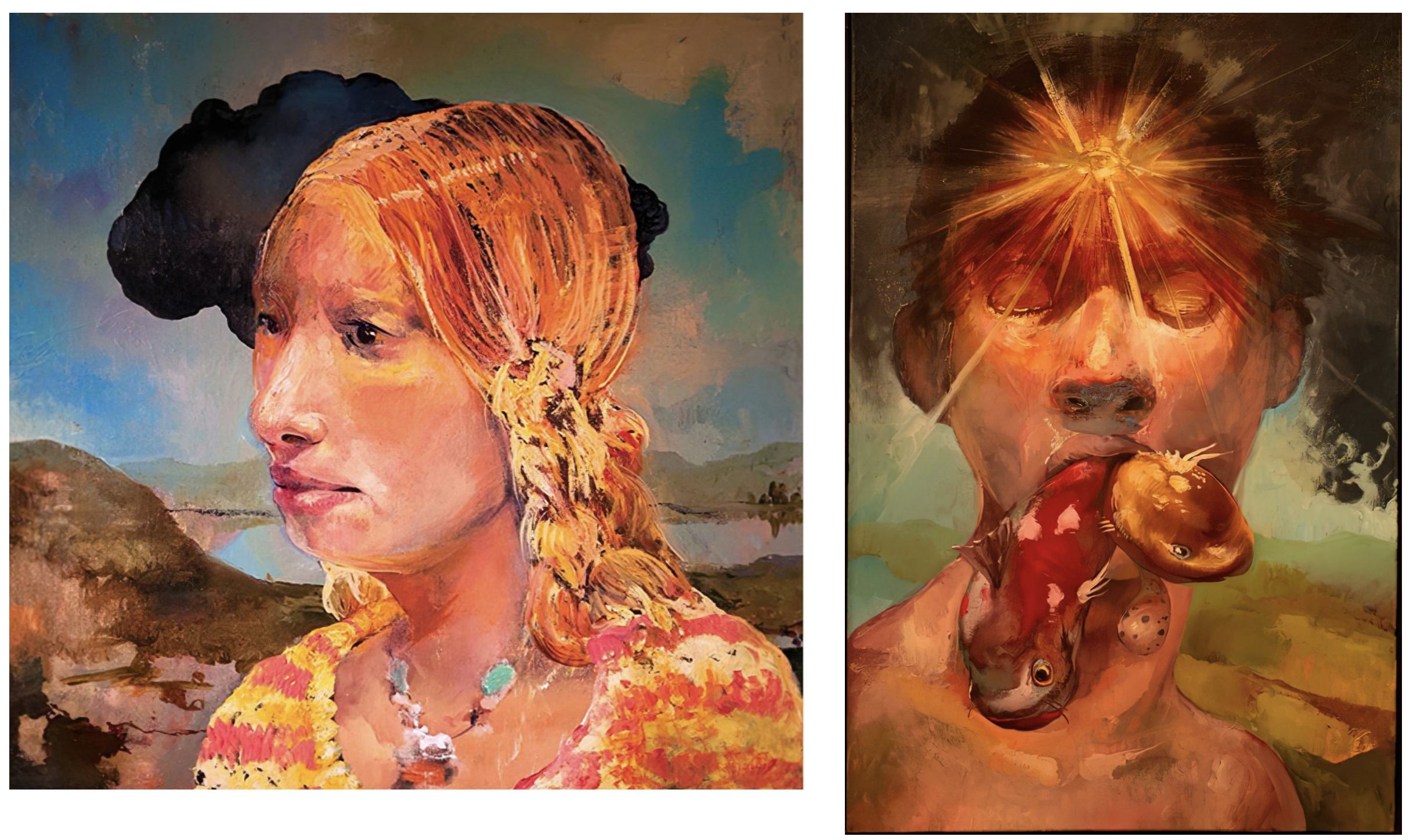 Statement for SUBSTRATA: The work for this exhibition was not easy to make. The figures within the paintings have experienced at least a dozen incarnations. The depicted landscapes have been scraped and adjusted in a labored loop of destruction and reparation. The skies were black before they were pink or lavender, and the animals have been manipulated to a degree that would make Dr. Moreau blush. I am not certain, even now, if the images have found their final form or if I will ever understand what they mean.