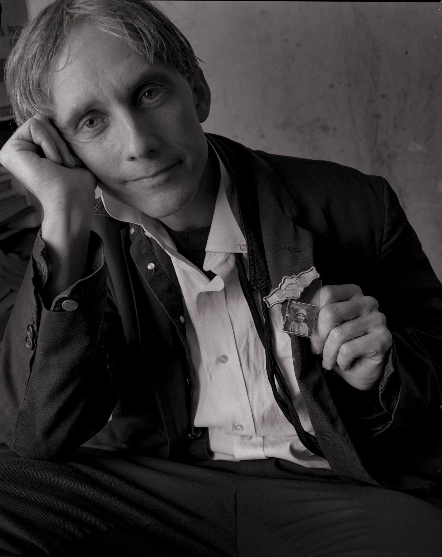In this striking portrait, Jeremy Ayers’ piercing gaze meets the viewer—a reminder of his role as both observer and participant in cultural history. Clutching a lapel pin depicting his mother as a young girl, the image weaves together memory, identity, and creative lineage—a poignant reflection of Ayers’ lasting influence on art and community.