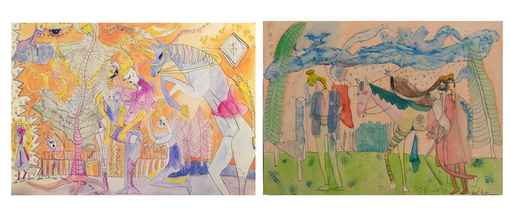 Sofia Zu’bi wants to capture a lost innocence each of us has experienced. Her paintings and drawings show scenes of dollish cartoon individuals forming a colorful congregation. These scenes radiate emotion; something the viewer can pick up on a momentary view. It’s obvious that Sofia goes above and beyond her creation. She embeds whatever emotion she feels into every stroke, line, and color choice.
