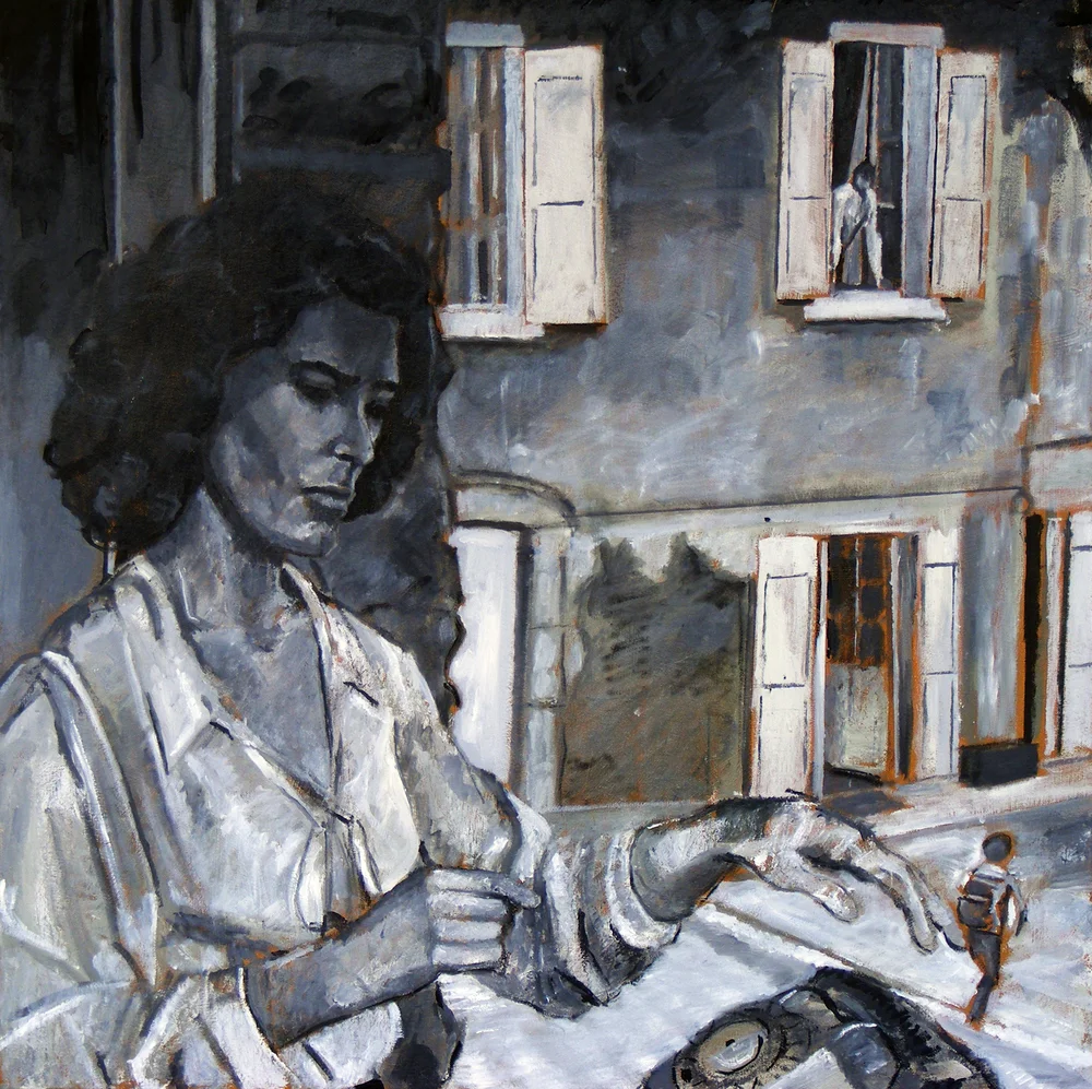 In Case You Need Me Take My Number was featured in 2011 in Marco Polo online Magazine as part of “A Happy Ending” curated by Darin Beasley. The exhibit and my painting used Francois Truffaut's La Femme d'à côté (The Woman Next Door) as a starting point. In the film Fanny Ardant plays Mathilde, the woman next door. Gerard Depardieu and his family live next door. An out of control love triangle ensues. I used a couple of stills from the film and brought them together towards a means of exploring the anticipation and longing in the film. It is a color film, but I used black and white as a limitation, a way to not get overly descriptive. There is a little ochre simmering underneath. The project was fun, a good way of stretching out of my normal themes. Film is not my normal jumping off point in recent years, but I felt good about the painting.