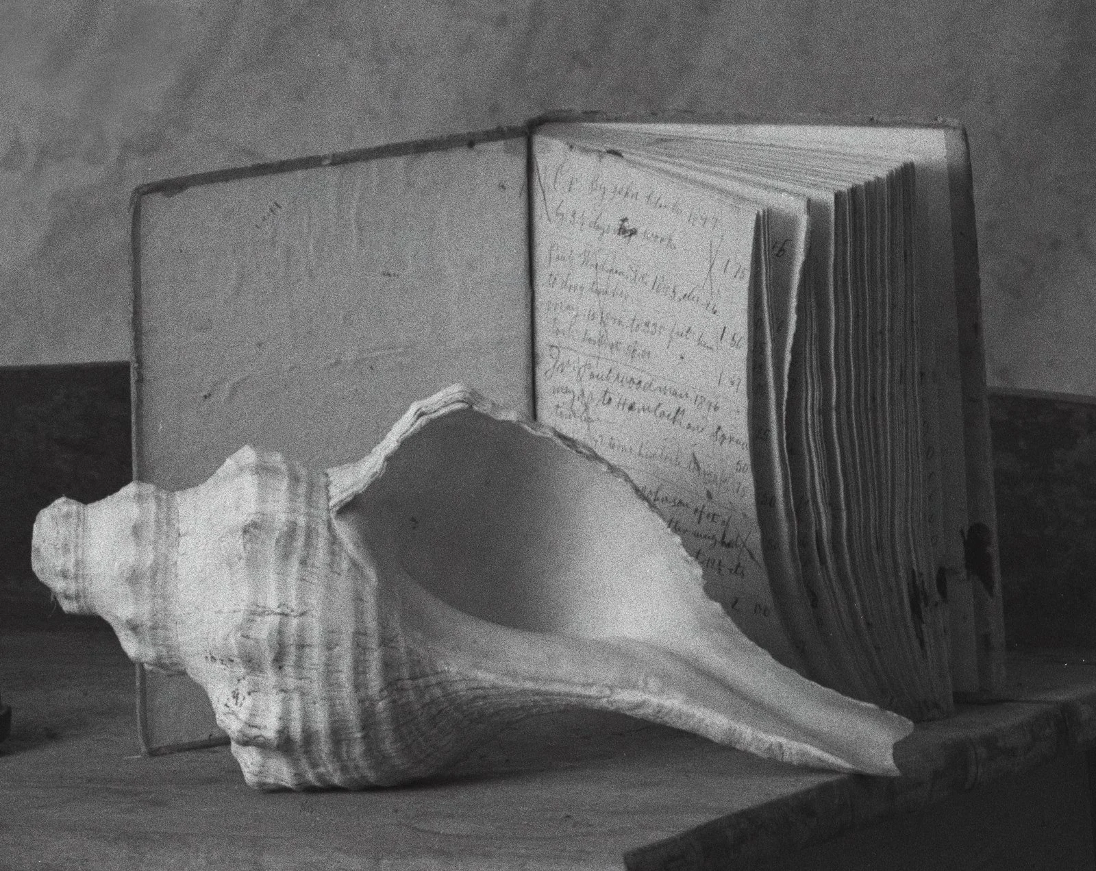 Figure: One of Matney’s black-and-white still-life compositions from Athens (Still Life Detail, 1994). Even in quiet tableaux of objects, Matney creates a psychological tableau – here an open journal, a conch shell, and a crystalline orb suggest an introspective narrative or dreamlike scene. Such dramatically lit still lifes were exhibited alongside his figurative works, inviting viewers to contemplate memory and meaning in everyday artifacts.