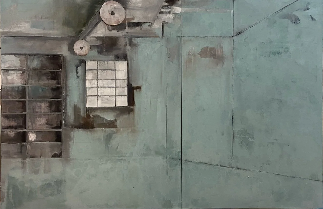 Ruller’s surfaces are haunted by ruins—barns, mills, and industrial relics—yet his palette insists on life. Bright, searing reds and acidic greens press against weathered tones of gray and blue, staging a tension between memory and immediacy, permanence and erosion. What emerges is not only a personal vocabulary of tone and texture, but also a larger meditation on how environments absorb human intervention and ultimately outlast us.
